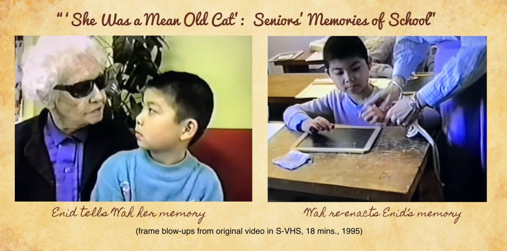 I’m also an accomplished independent filmmaker with 24 shorts and two feature-length films and videos to my credit. Two of my short films were nominated for Genies and, along with one of my features, have been screened internationally. (View Reading Between the Lines and my feature PATH on vucavu.com.) Most of my early films are distributed through the Canadian Filmmaker’s Distribution Centre. Many of my more recent shorts can be viewed on YouTube. Search “the Martha Tapes.” In this group of videos, there are two that were made in 1995 with my grade 3 class in the intergenerational program which I ran for many years. One of these, She was a Mean Old Cat, has the children valiantly re-enacting the seniors’ strong school memories in the setting of the old-fashioned schoolhouse. It is poignant and heartbreaking. (Check out the comment made by a former grade three student!)